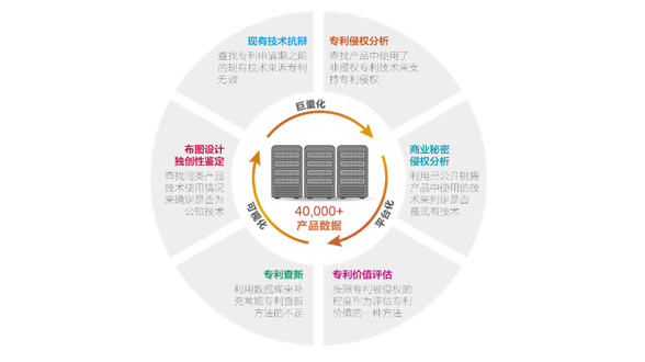 专利权人和企业知识产权部门:侵权取证、专利产品映射(PPM)、专利运营(专利布局、估值和交易)